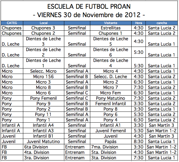 Los viernes debe presentarse al partido dentro del Torneo Interno de la Escuela, en el horario y el campo que corresponda a su partido.